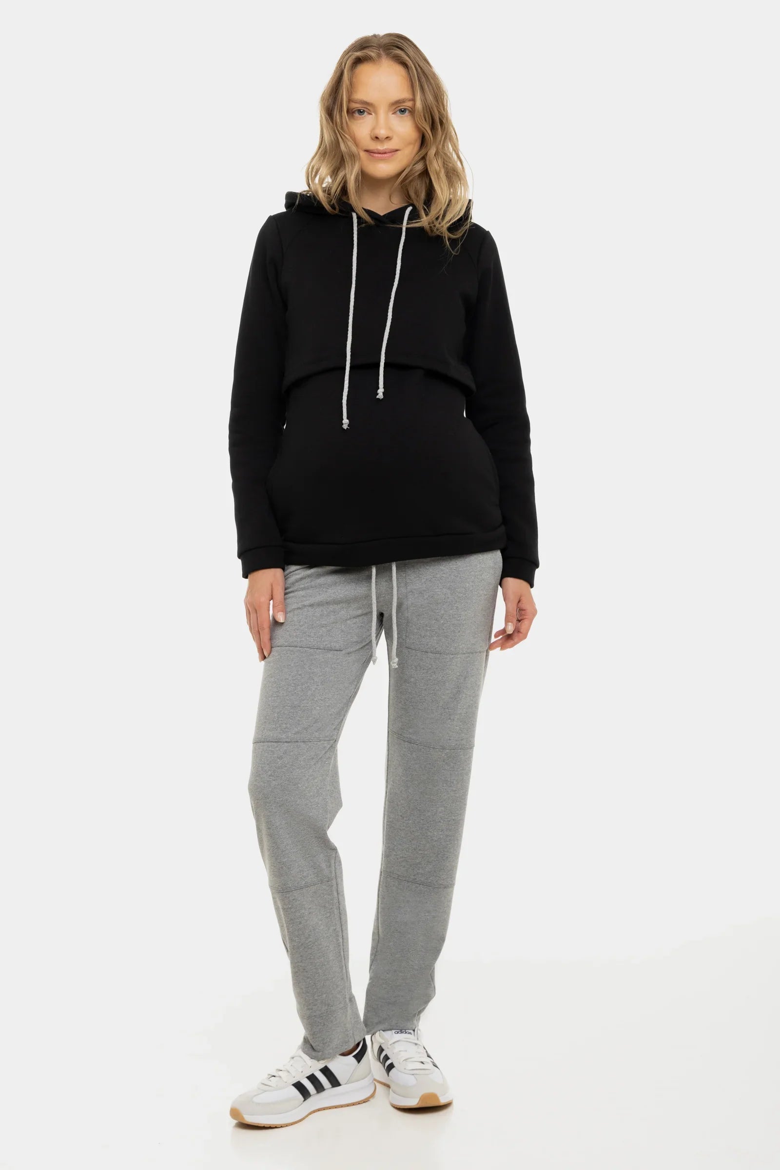 Hanorac din bumbac pentru gravide și alăptare - negru