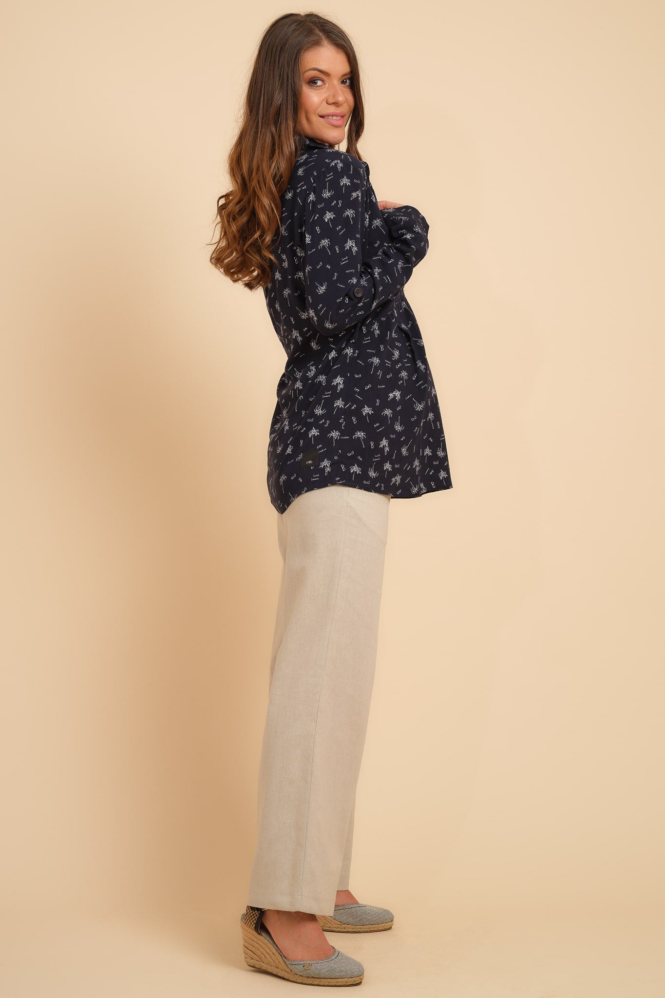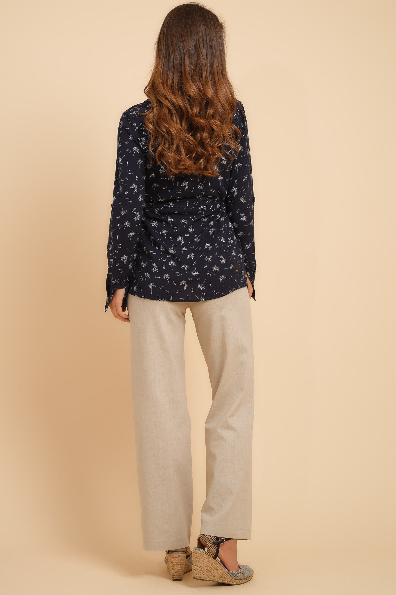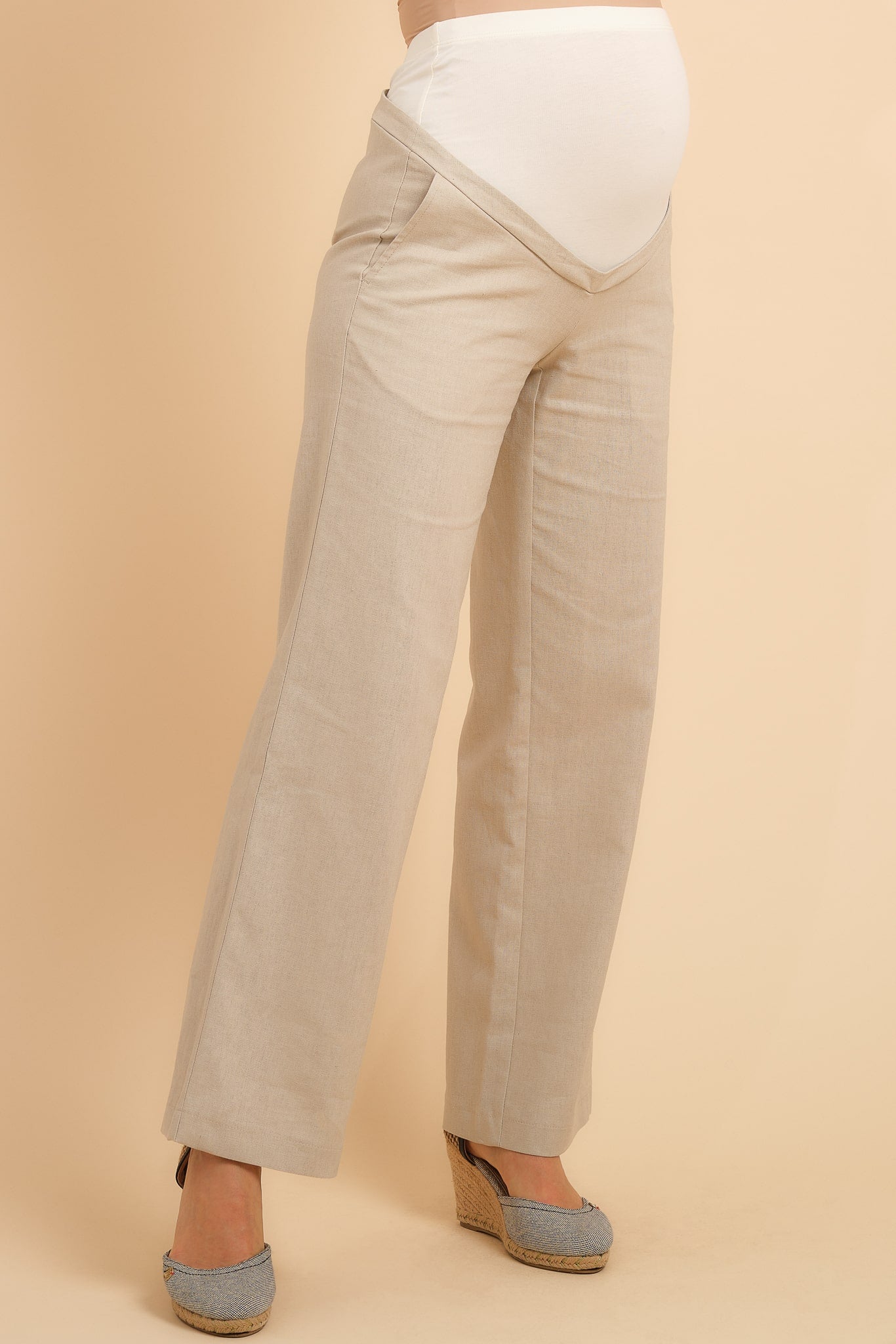 Pantalonii cu efect de subțiere a siluetei, confecționați din țesătură din mix de bumbac și in pentru o răcoreală și confort optime.