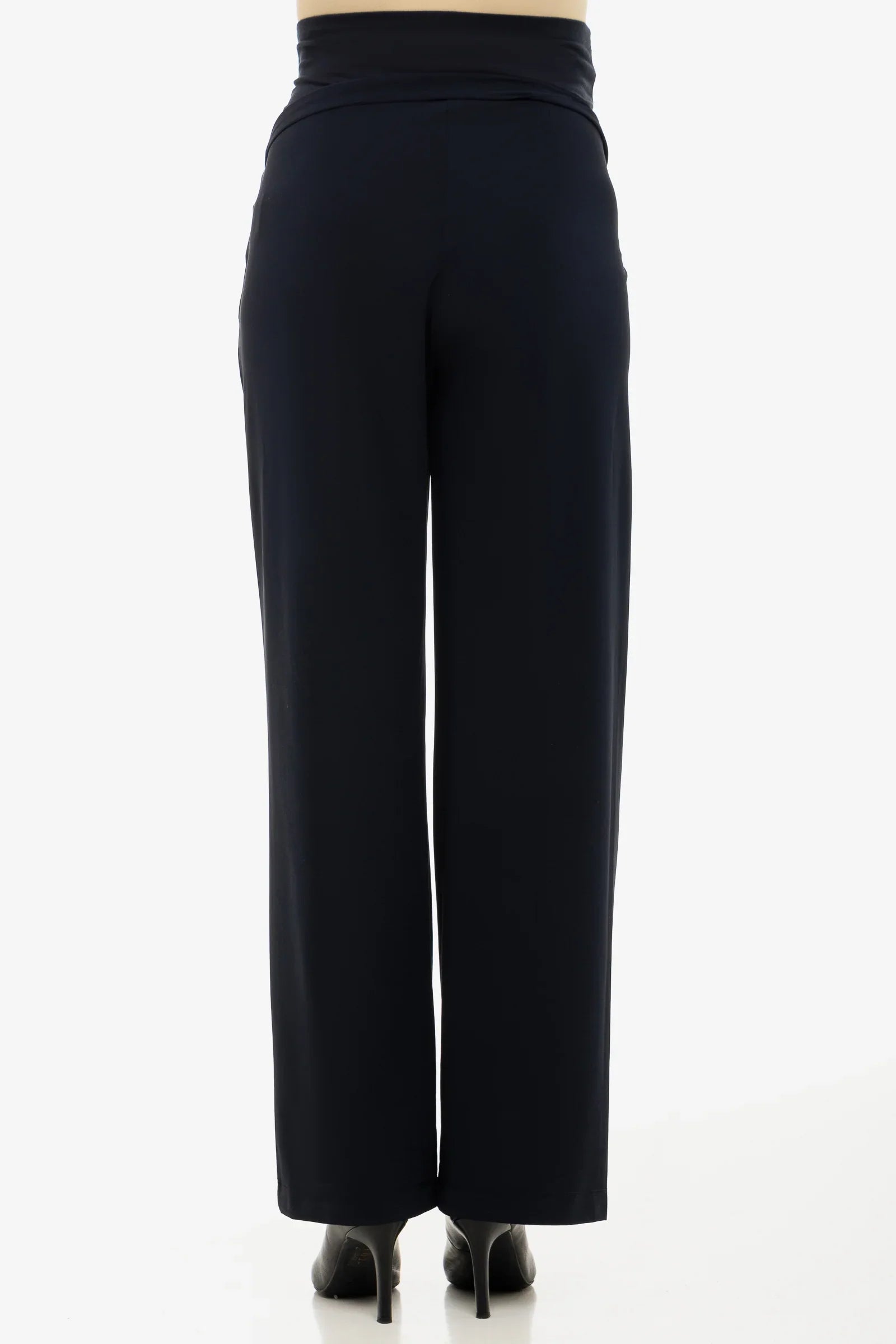 Pantaloni evazați cu pliuri pentru gravide - albastru închis
