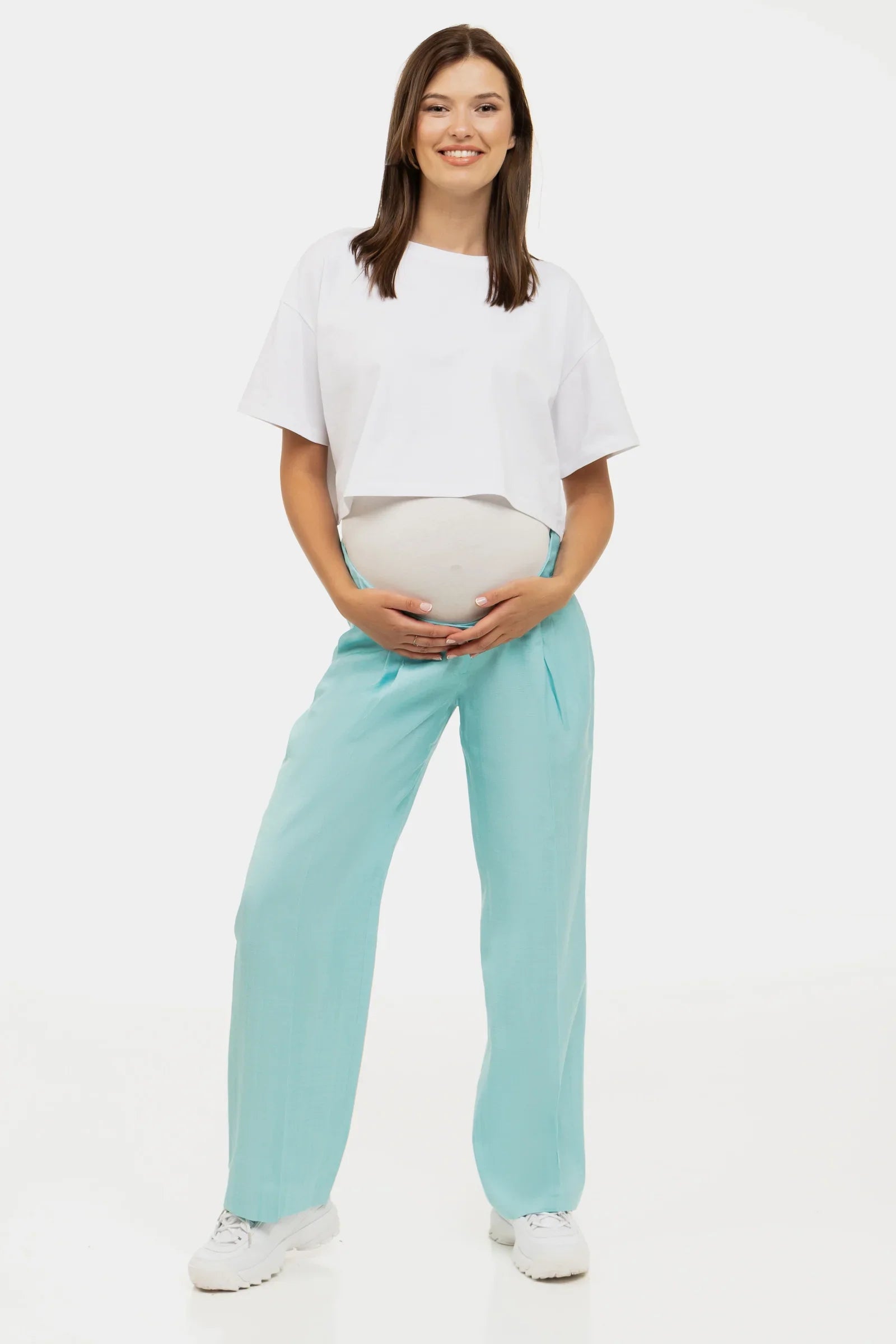 Pantaloni evazați cu pliuri pentru gravide în albastru deschis