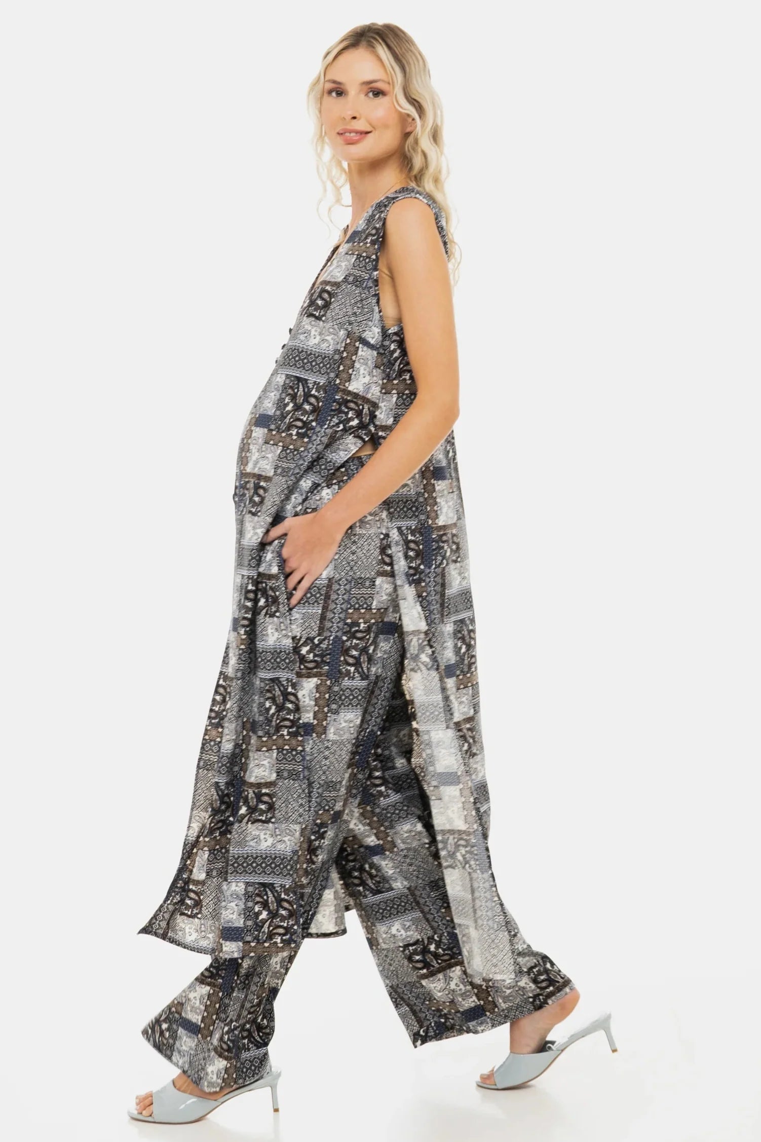 Pantaloni evazați pentru gravide cu imprimeu geometric