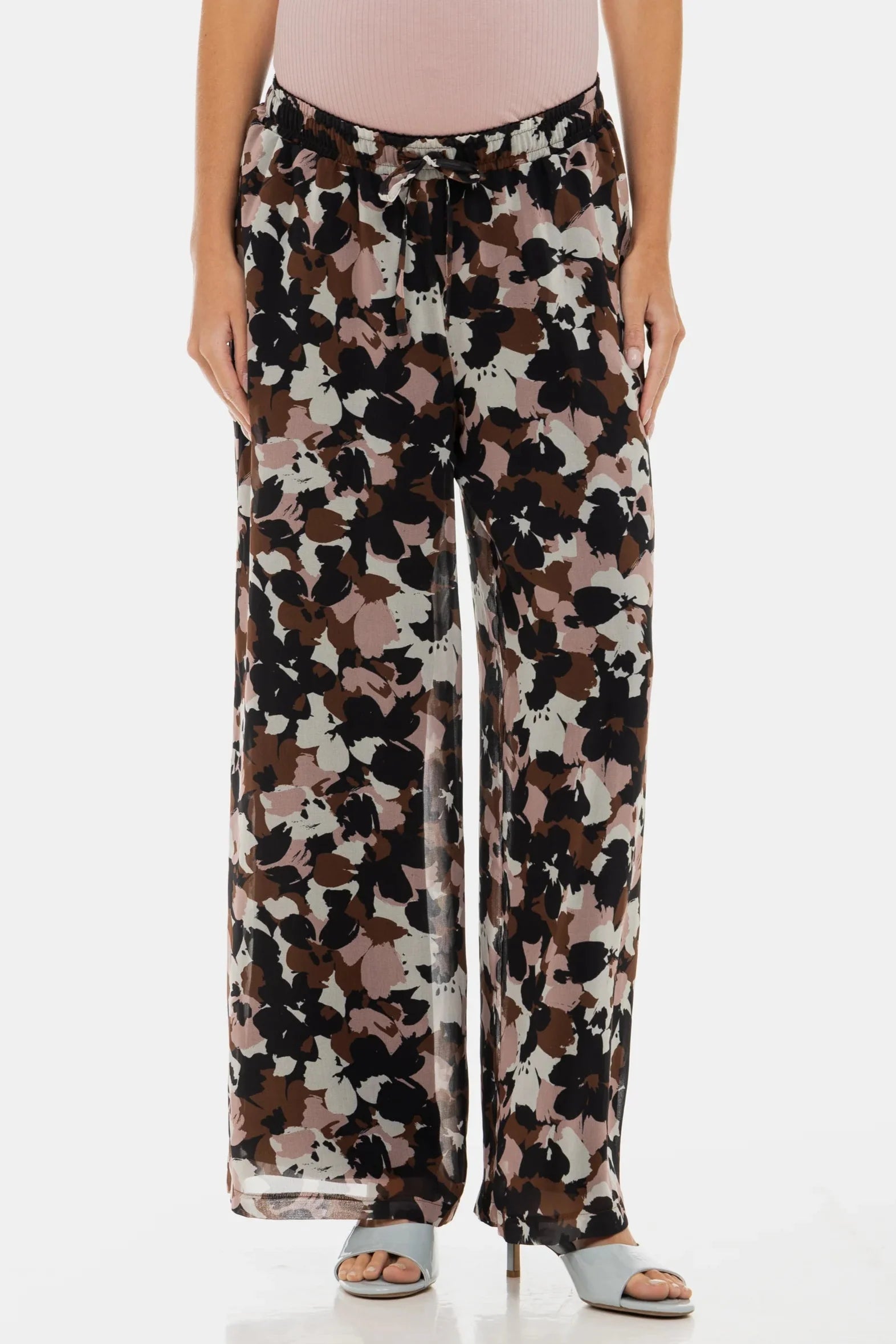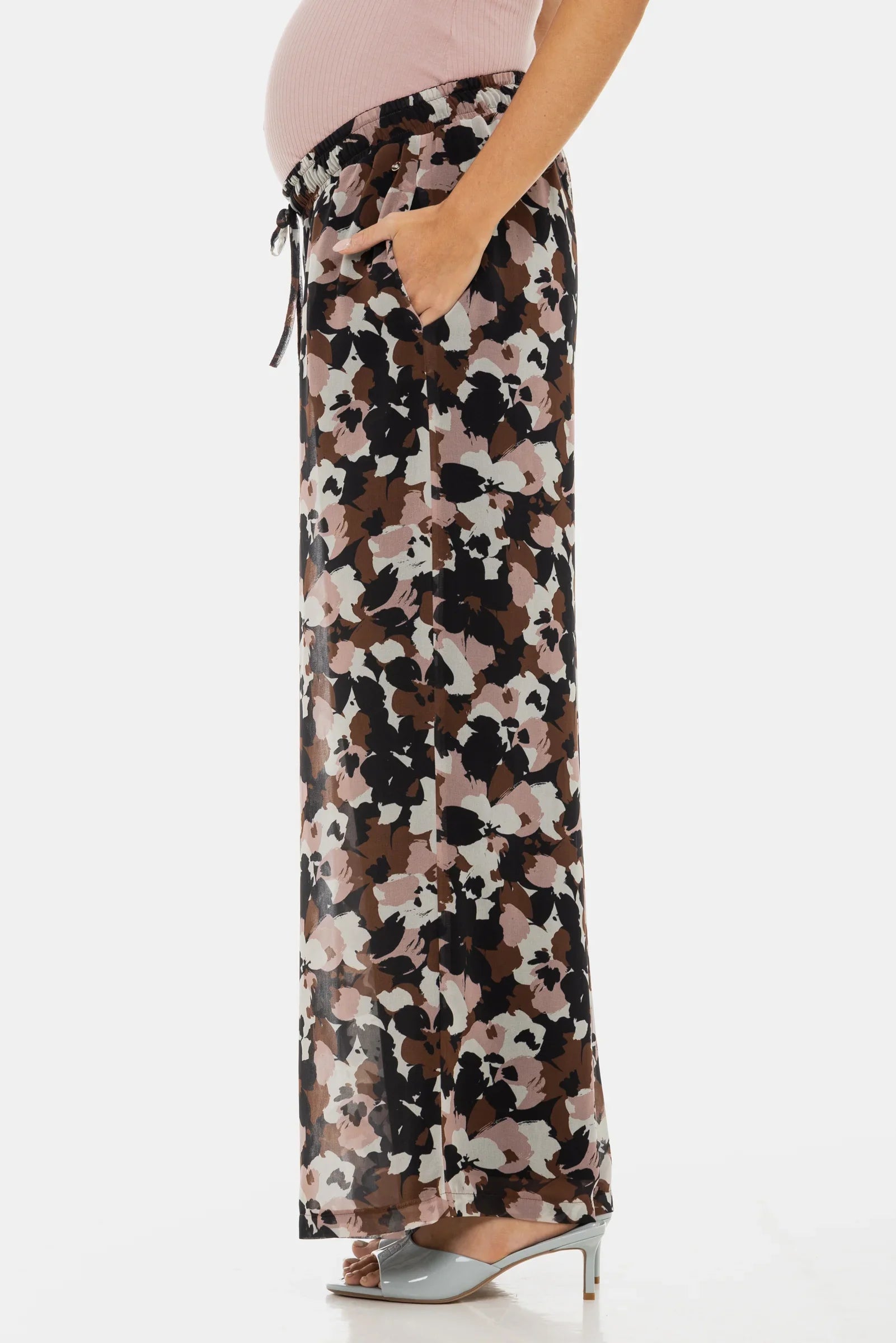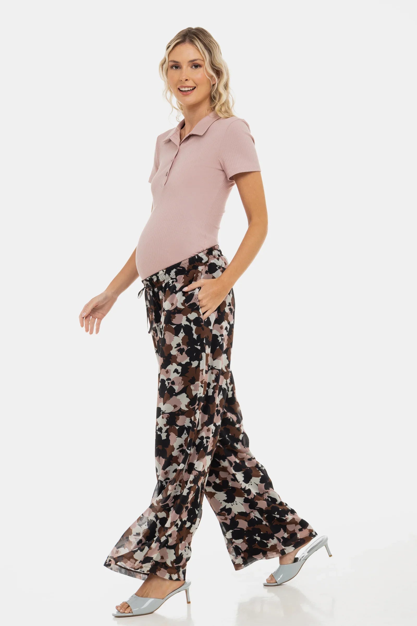 - Pantaloni largi pentru gravide din material chiffon cu imprimeu floral