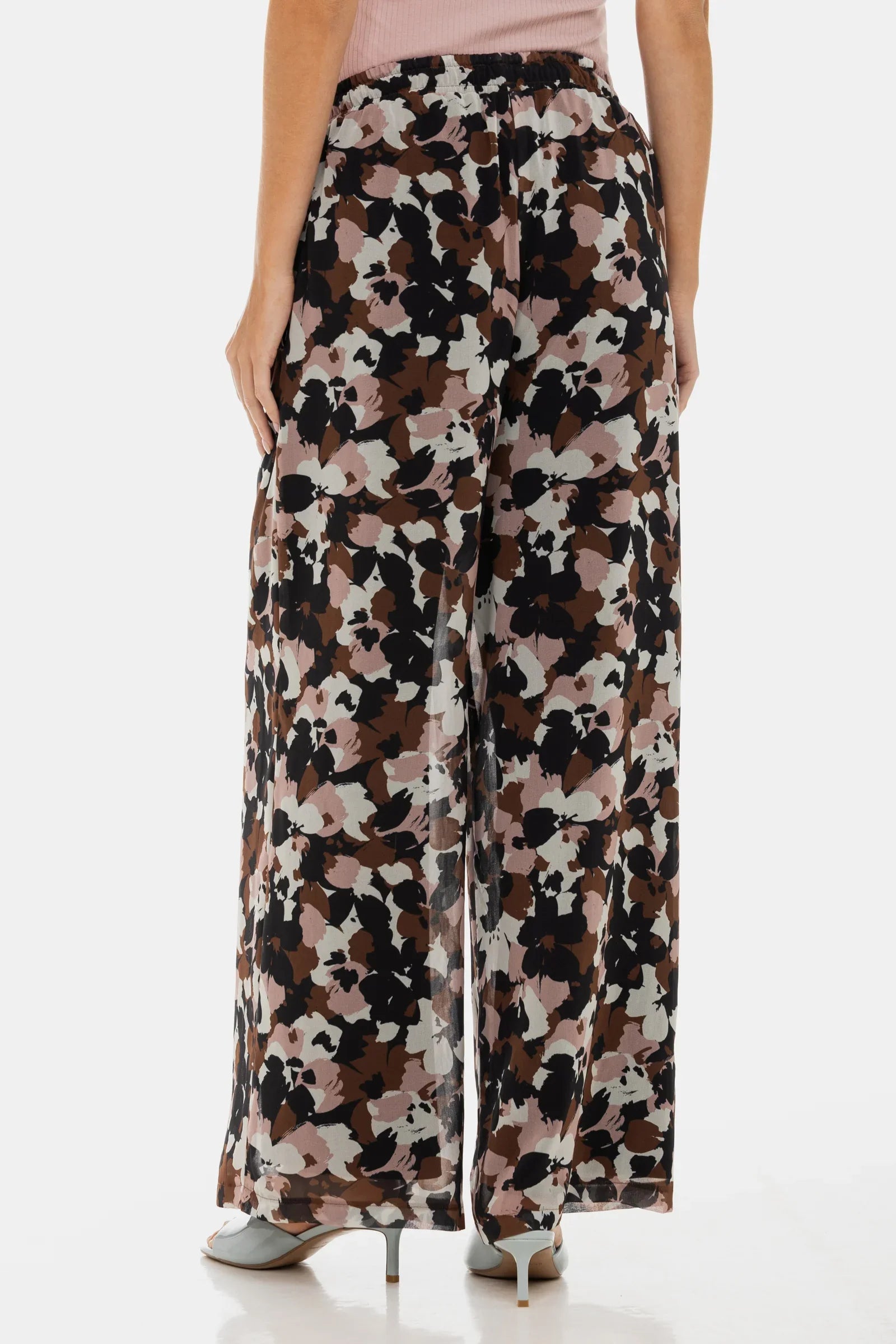 Pantaloni largi din șifon pentru gravide, cu imprimeu