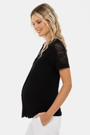 Bluză pentru gravide și alăptare cu detalii din dantelă – neagră