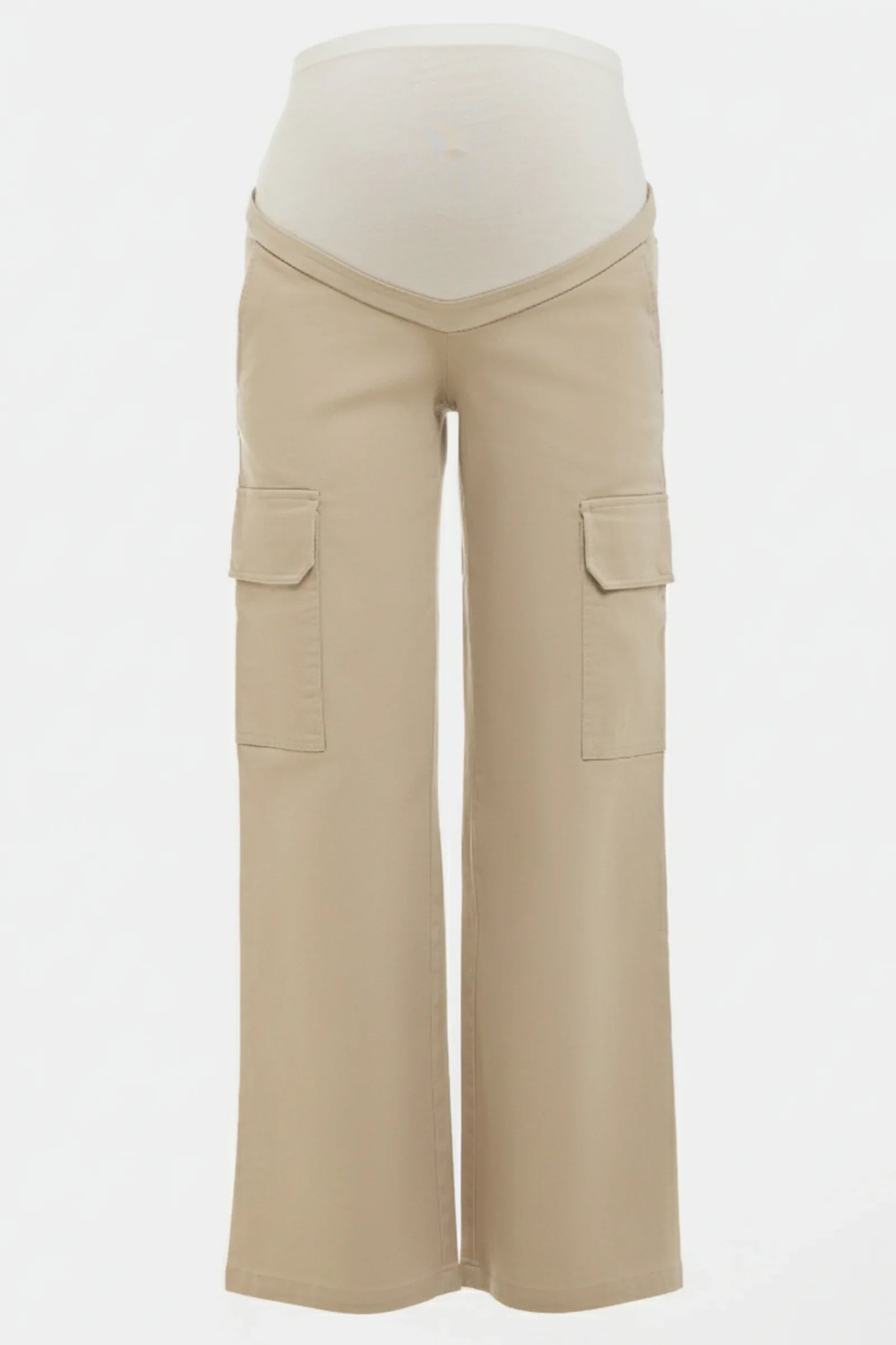 • Pantaloni cargo elegant croiți pentru gravide din material de bumbac în bej