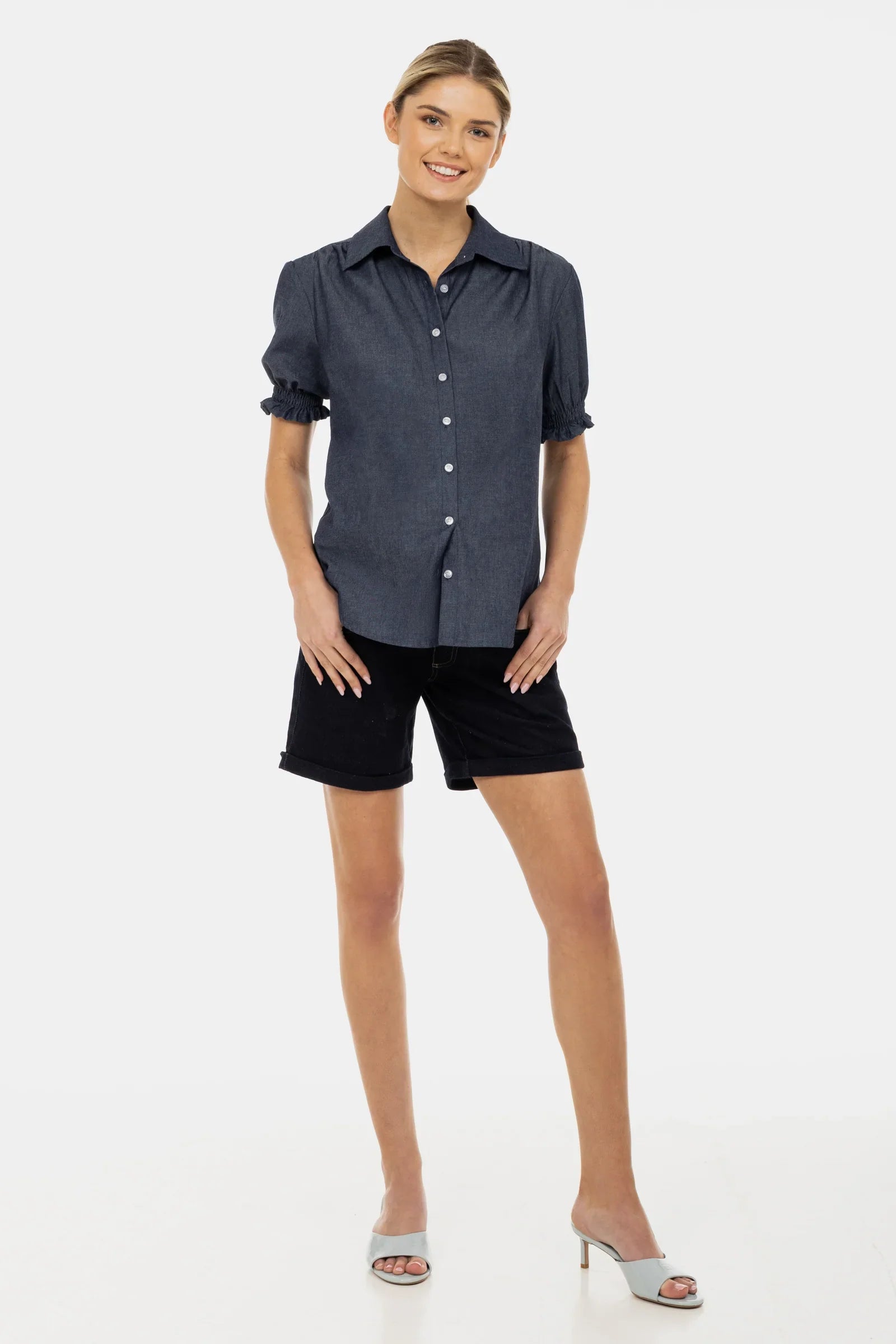 Bluză din bumbac pentru gravide și alăptare cu mâneci cu volane