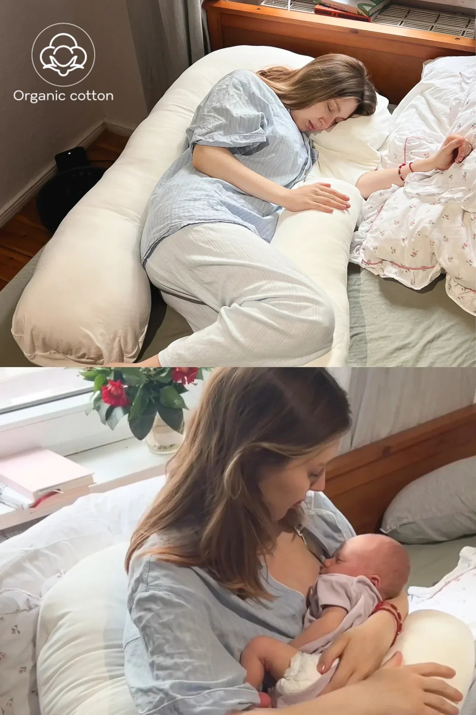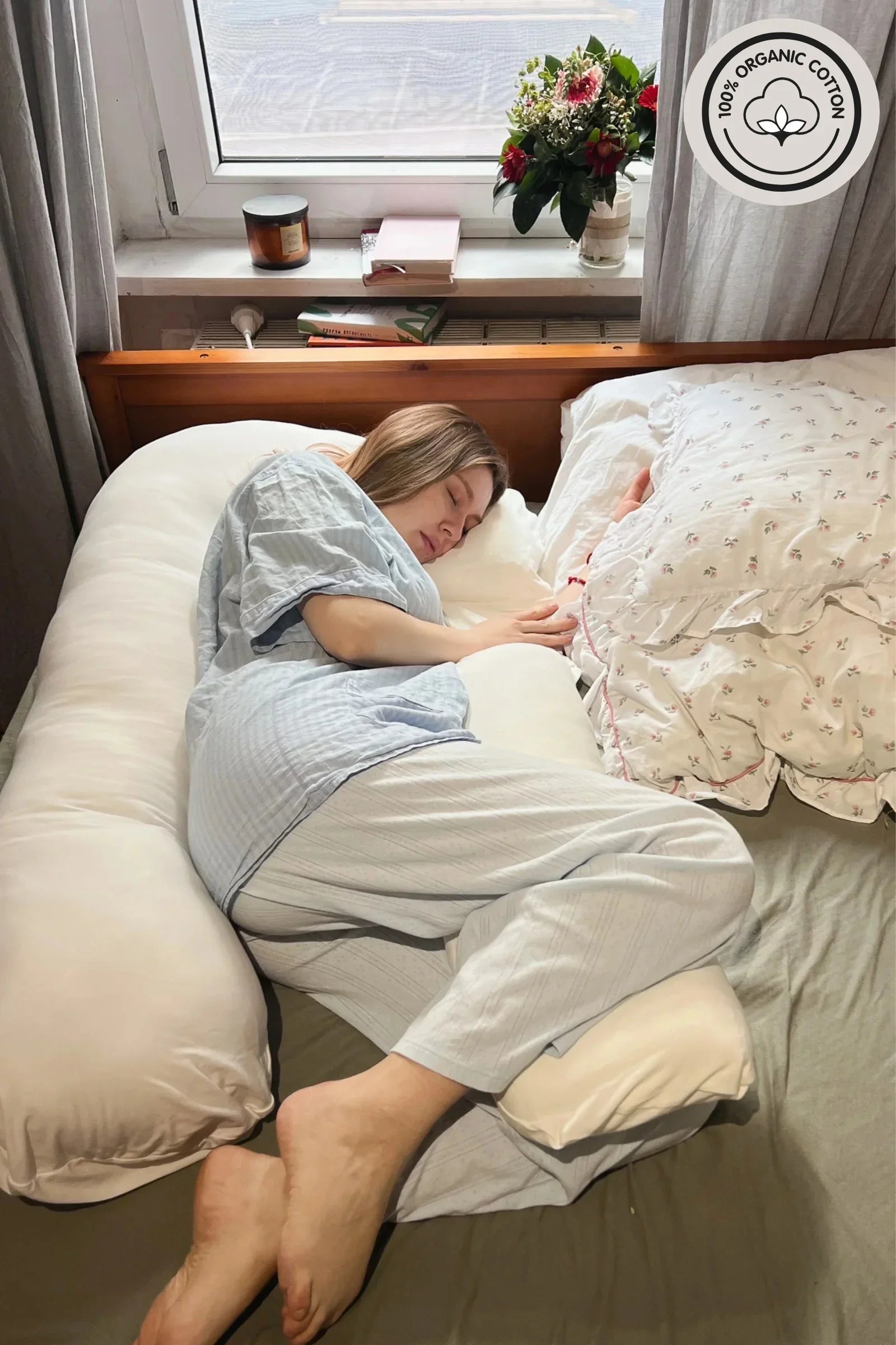 Pernă pentru gravide și alăptare 3 în 1 - bumbac organic - ecru