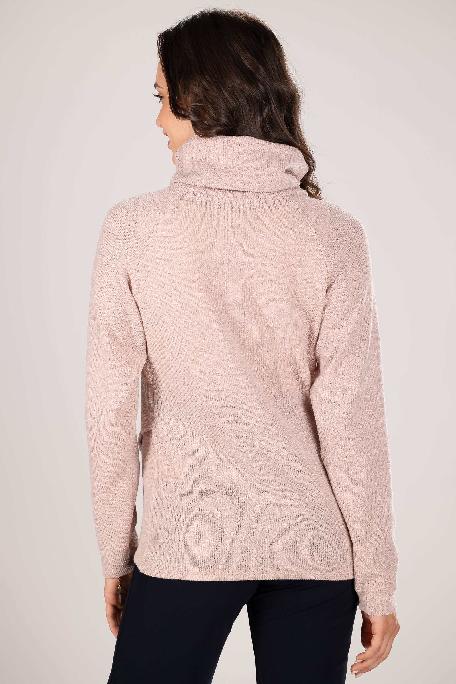 - Puloverul este confecționat dintr-un tricot cu nervuri