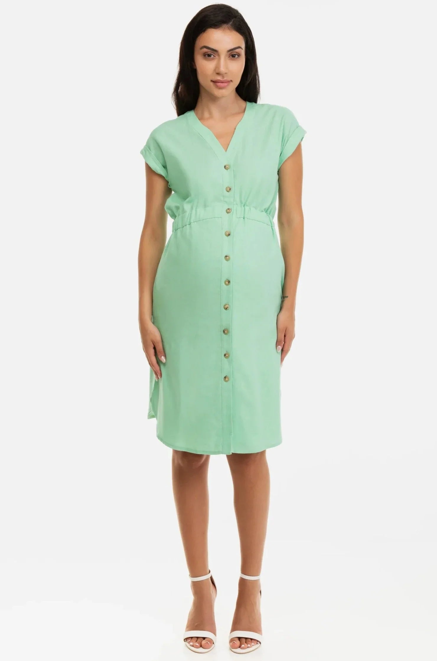 Rochie cămașă pentru gravide și alăptare din amestec de in