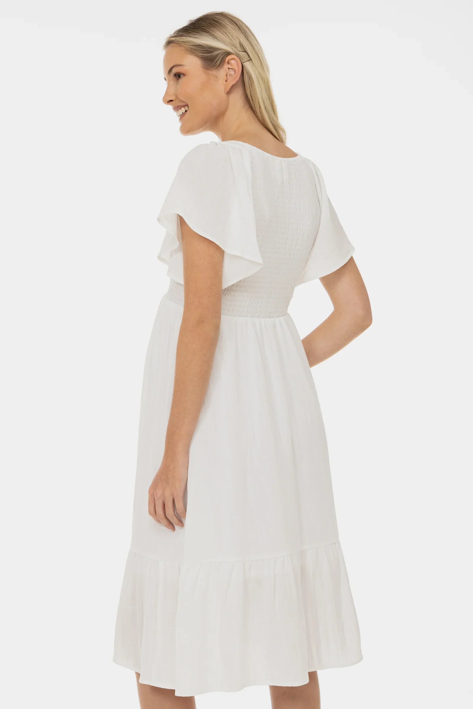 • Cusătură elastică sub bust – se adaptează burticii în creștere