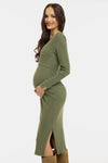 - Rochie pentru gravide din tricot ripsat din bumbac, în culoarea bej