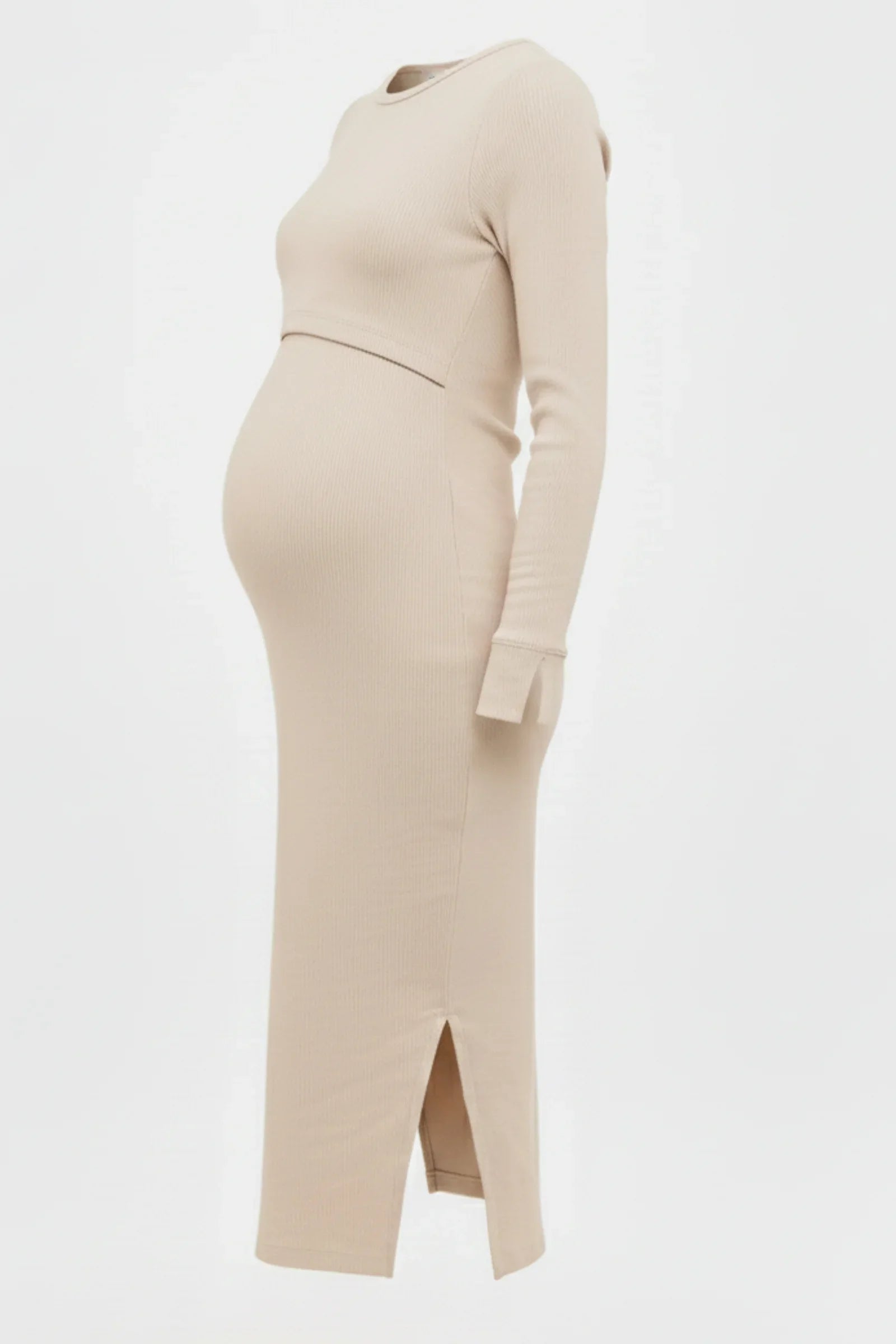 Rochie din bumbac ripsat pentru gravide și alăptare - bej