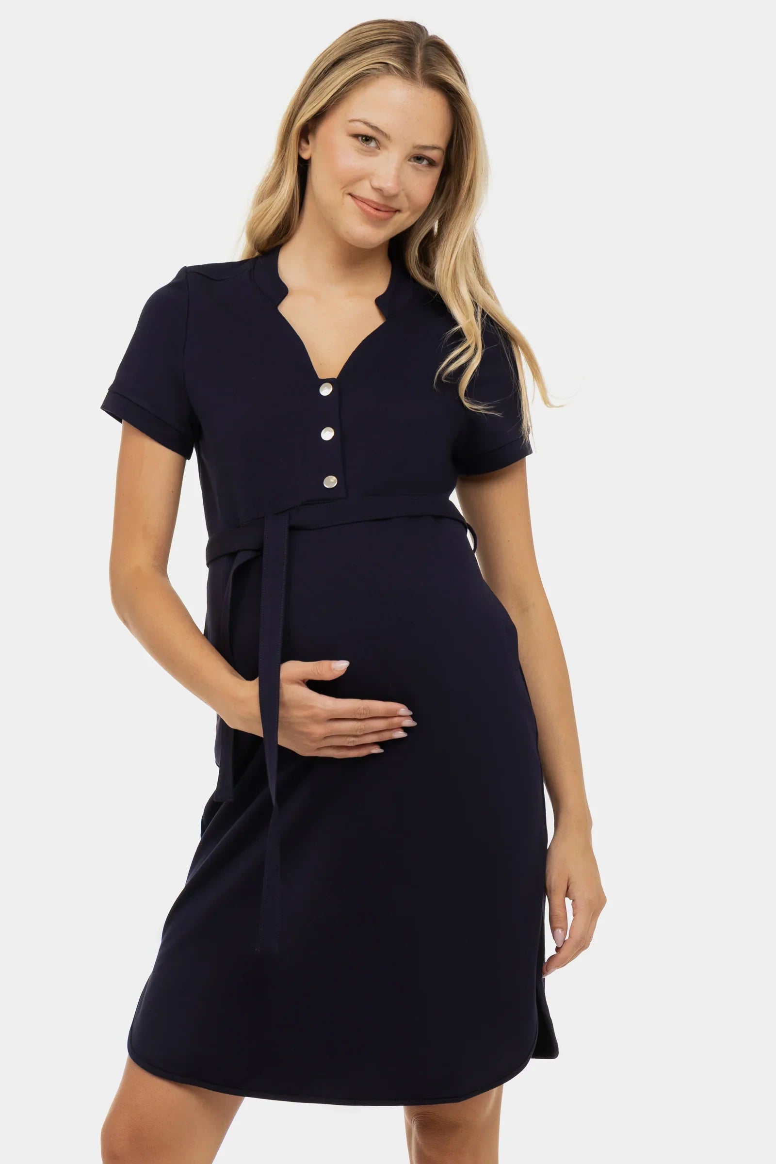 Rochie din jerseu pentru gravide și alăptare cu nasturi tic-tac