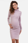 Rochie pentru gravide și alăptare cu guler înalt – liliachiu deschis