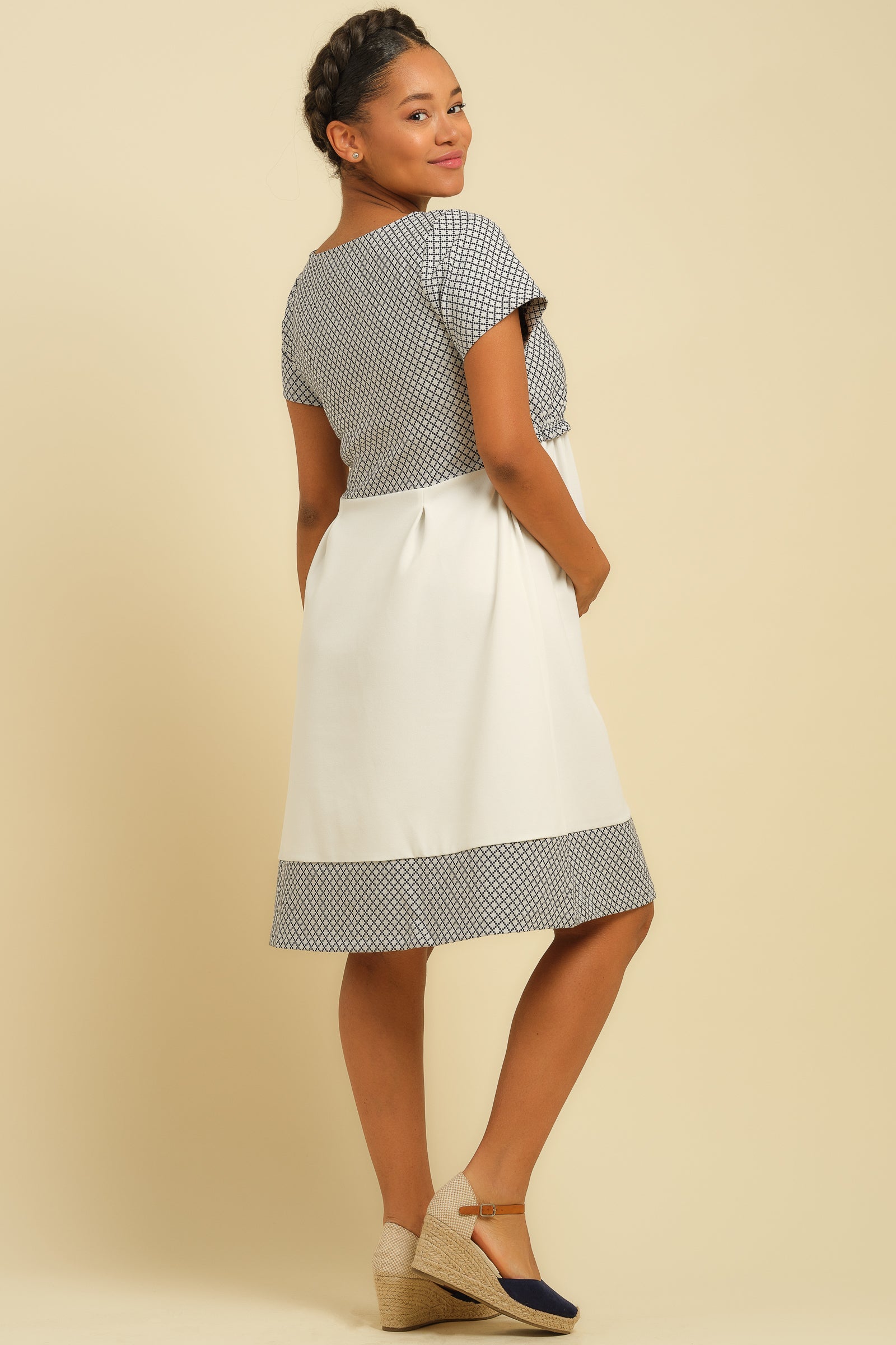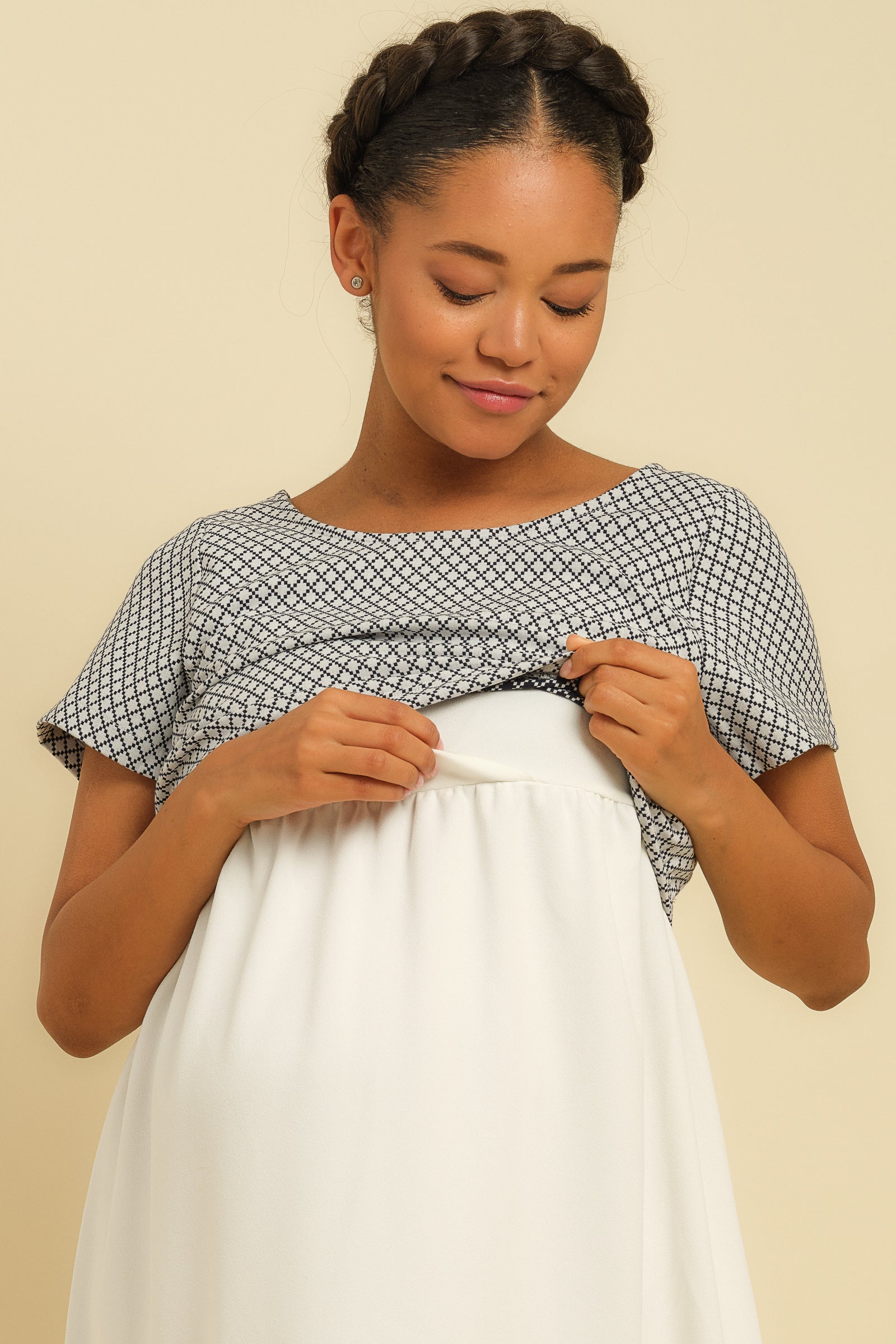 - Rochie pentru gravide și de alăptare în alb cu parte de jos mai largă