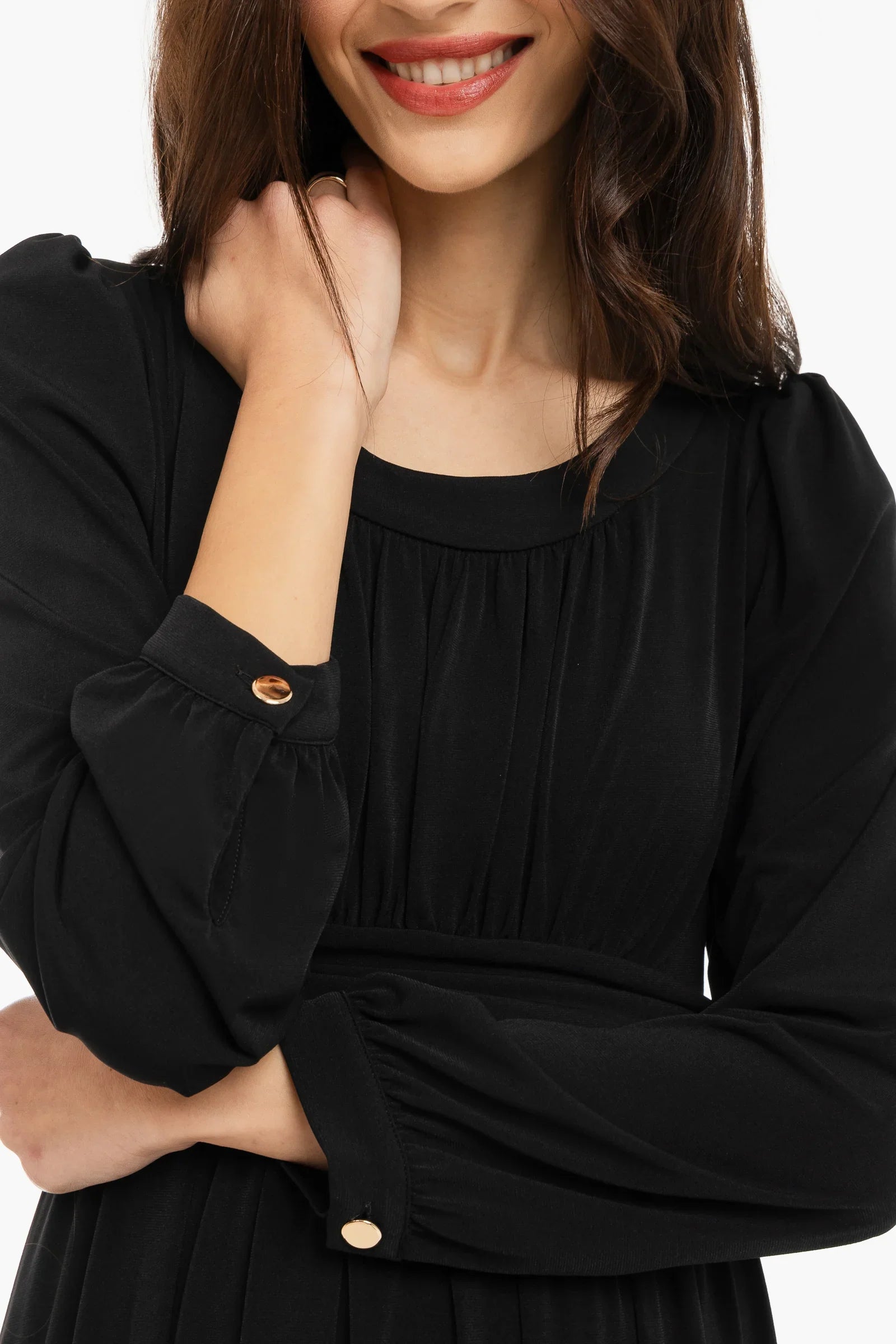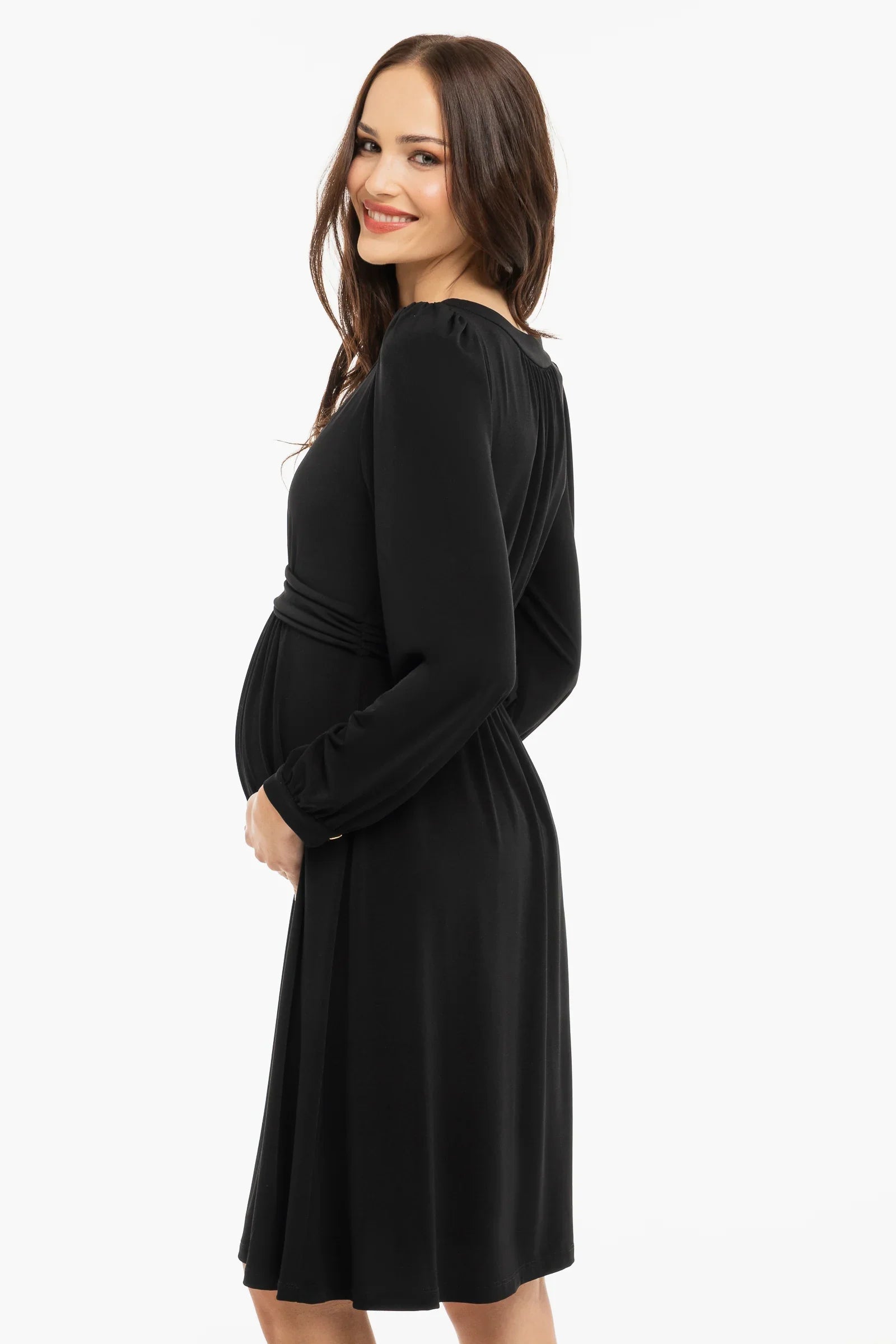 Creată pentru momentele speciale, această rochie pentru gravide îmbină confortul și eleganța, având drapaje frumoase și un material moale cu cădere lejeră.